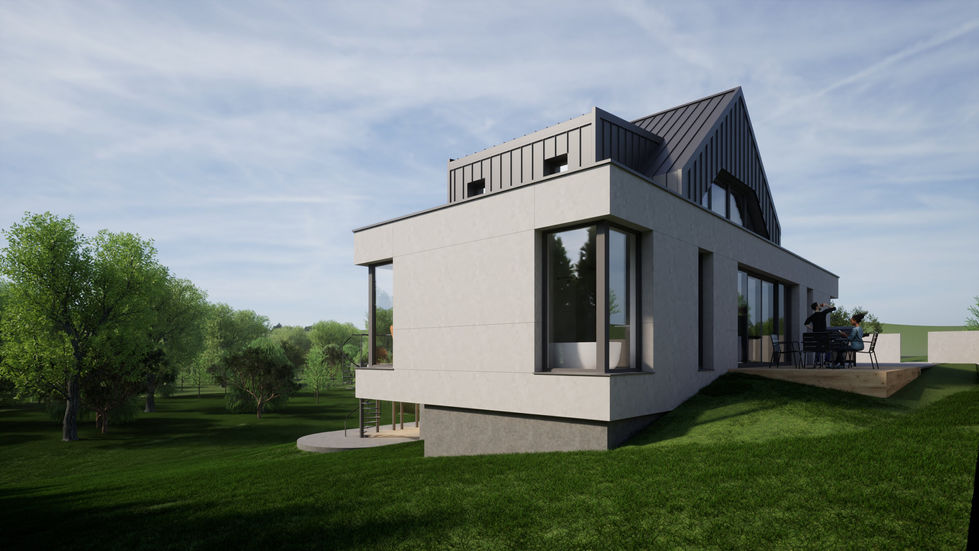 Projekt domu jednorodzinnego usytuowanego na stromej działce.